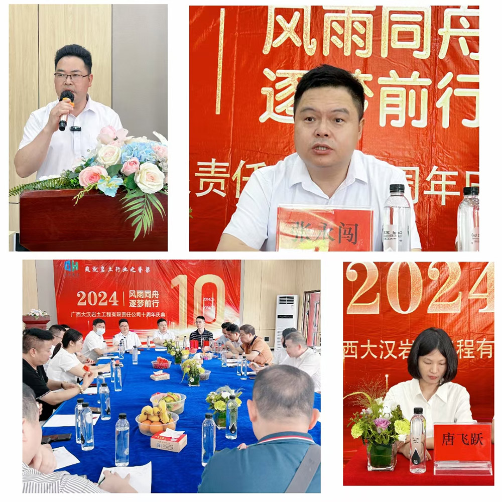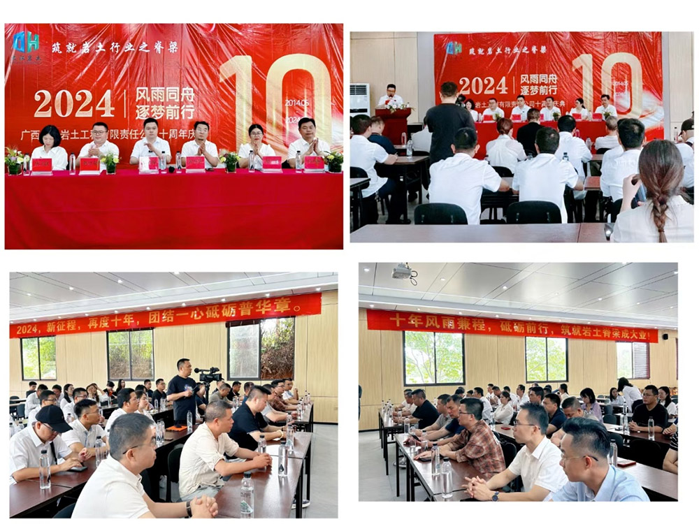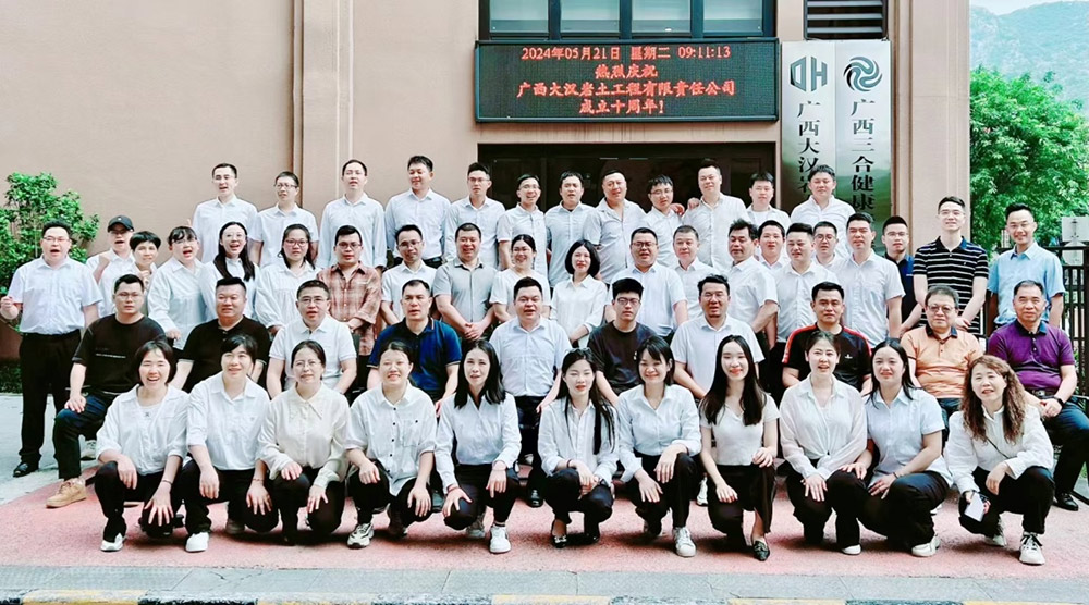 2024年5月21日,在那溫和而明媚的初夏時(shí)節(jié),大漢巖土全體員工與合作伙伴舉行隆重聚會(huì),于桂林市福東苑山莊舉行公司成立十周年慶典活動(dòng)。